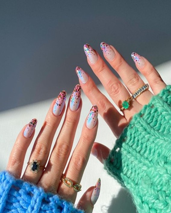 A aura nails foi uma das tendências de nail art mais populares no ano passado e pode ser uma opção para enfeitar a produção neste Carnaval. O estilo brinca com cores vibrantes e produz um efeito colorido sobre as unhas que é a cara da festa.