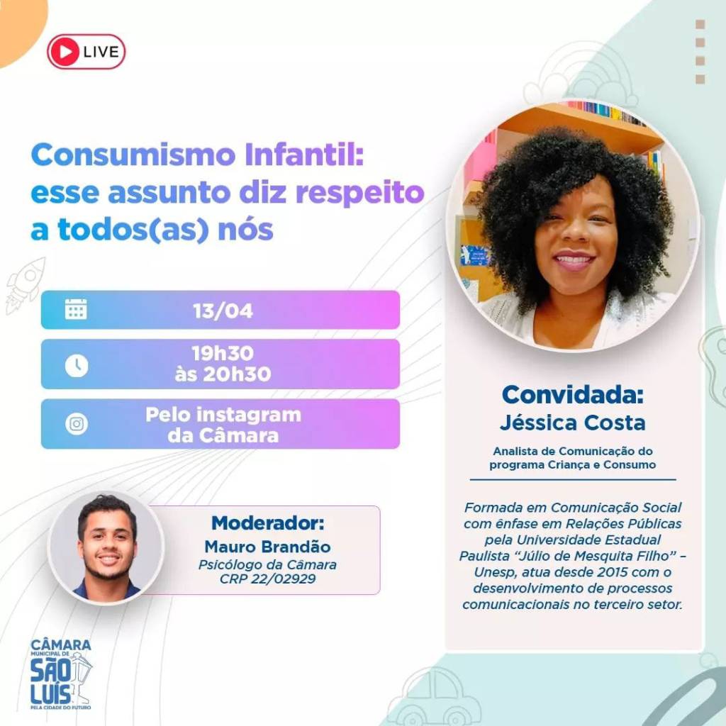 A live integra o calendário de ações da Câmara de São Luís no período de Páscoa e tem como objetivo discutir o que é o consumismo infantil, pontuar os principais impactos no desenvolvimento da criança, destacar as responsabilidades e propor reflexões sobre como combater o problema.
