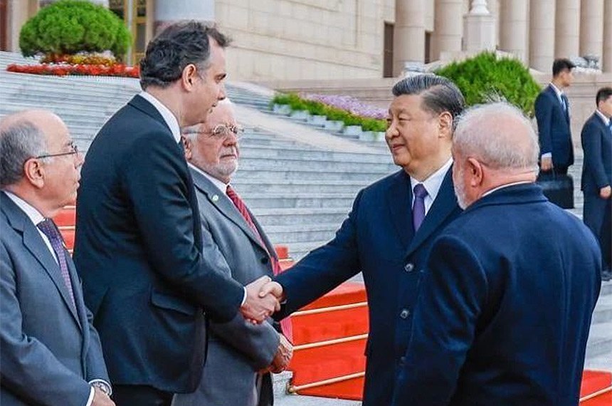 O presidente do Senado, Rodrigo Pacheco, participou ontem, sexta-feira (14), juntamente com o presidente Luiz Inácio Lula da Silva, do encontro com o presidente da China, Xi Jinping, em Pequim. A comitiva do governo e de parlamentares brasileiros acompanhou a assinatura de 15 acordos comerciais e de parceria entre as duas nações. Eles cumprem agenda no país desde quinta-feira (13) com o objetivo de reforçar as relações diplomáticas com os chineses e atrair mais investimentos para o Brasil.