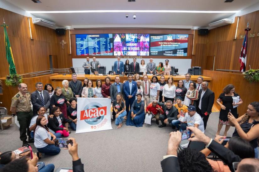 A Assembleia Legislativa do Maranhão realizou, nesta quinta-feira (22), Sessão Solene alusiva aos 30 anos do movimento ‘Ação da Cidadania’. A homenagem foi proposta pelo deputado estadual Zé Inácio (PT). O ato, realizado no Plenário Nagib Haickel, foi conduzido pelo deputado Francisco Nagib (PSB) e contou com a participação de representantes do movimento no Maranhão e autoridades.