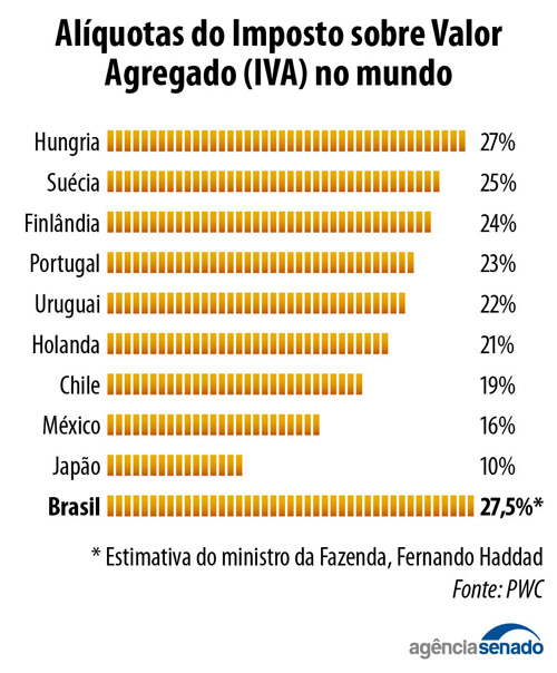 — De acordo com as palavras do ministro [da Fazenda] Fernando Haddad, o imposto [pode passar a ser] de 27,5%. Sabe qual é o maior IVA do mundo até agora? O da Hungria, que é 27%. Vamos oferecer ao Brasil o maior imposto sobre valor agregado do mundo — argumentou Marinho.