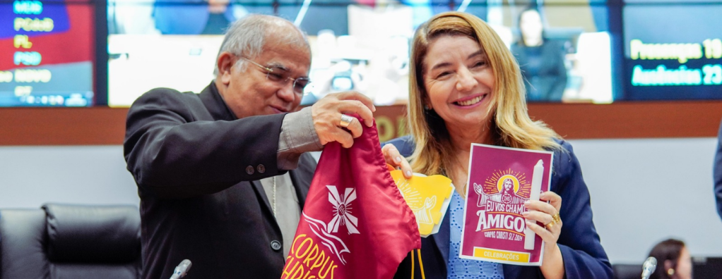 A presidente da Assembleia agradeceu a visita cordial de Dom Gilberto Pastana e o convite feito à Assembleia para a celebração de Corpus Christi.