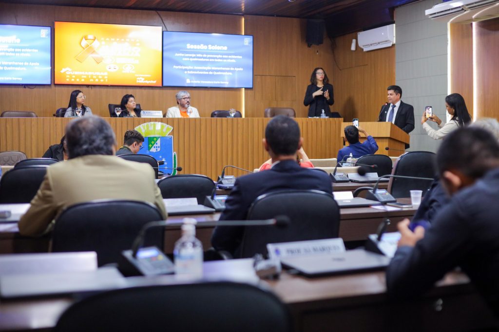 A Câmara Municipal de São Luís realizou, na manhã desta sexta-feira, 7, uma sessão solene em alusão ao Junho Laranja, campanha dedicada à conscientização sobre prevenção de queimaduras. O encontro ocorreu no Plenário Simão Estácio da Silveira e foi conduzido pela vereadora Karla Sarney (PSD), autora do requerimento que deu origem à solenidade