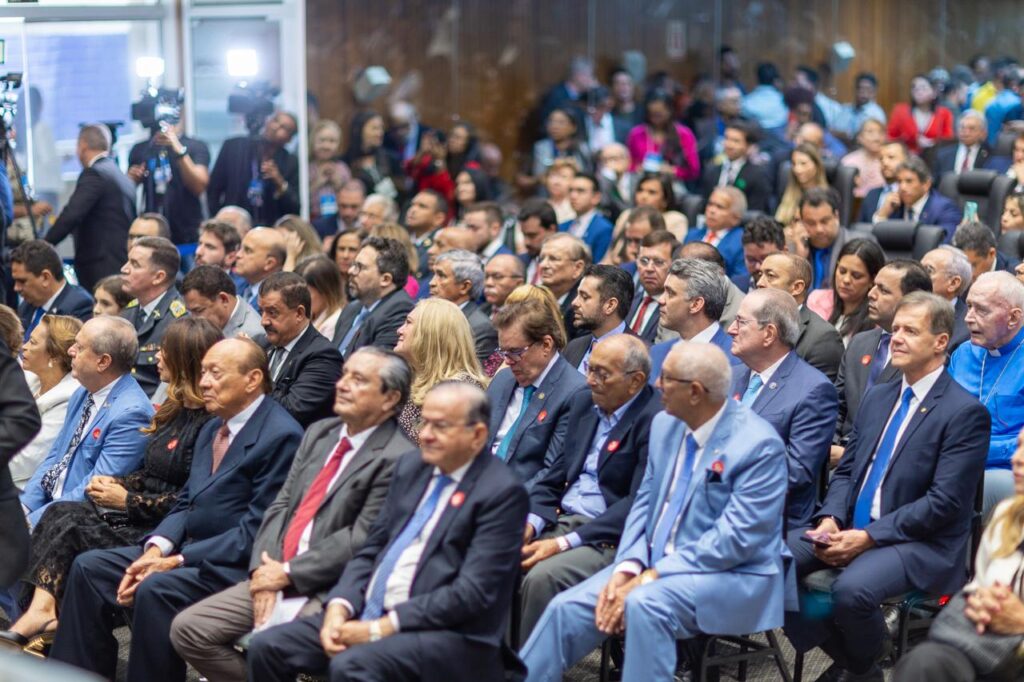 Logo na entrada, Sarney foi recepcionado com música orquestrada pela Banda do Bom Menino. Ainda no hall de entrada do plenário, ele participou de um momento de autógrafos em uma réplica de uma mesa presidencial de quando foi chefe do Executivo nacional, entre 1985 e 1990. Nesse momento, autografou exemplares do livro “Saraminda”, uma de suas mais importantes e reconhecidas obras, ao lado de duas crianças alunas da Creche-Escola Sementinha, que funciona na Alema.