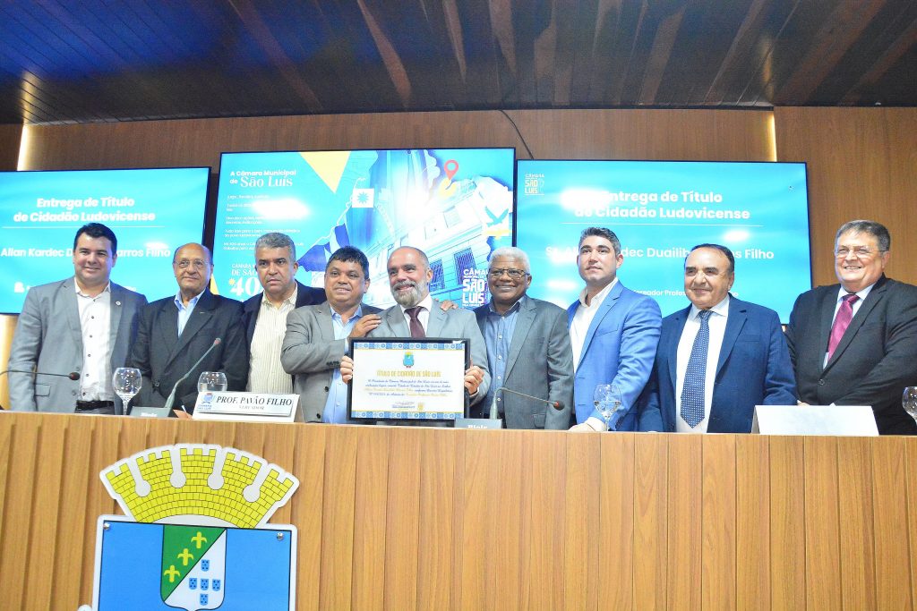 Em sessão especial na tarde desta segunda-feira (1), a Câmara Municipal de São Luís concedeu o título de cidadão ludovicense ao professor da Universidade Federal do Maranhão (UFMA), Allan Kardec Duailibe Barros Filho. A outorga do título foi proposta pelo vereador Pavão Filho (PSB) e aprovada por unanimidade pelos demais parlamentares da Casa.