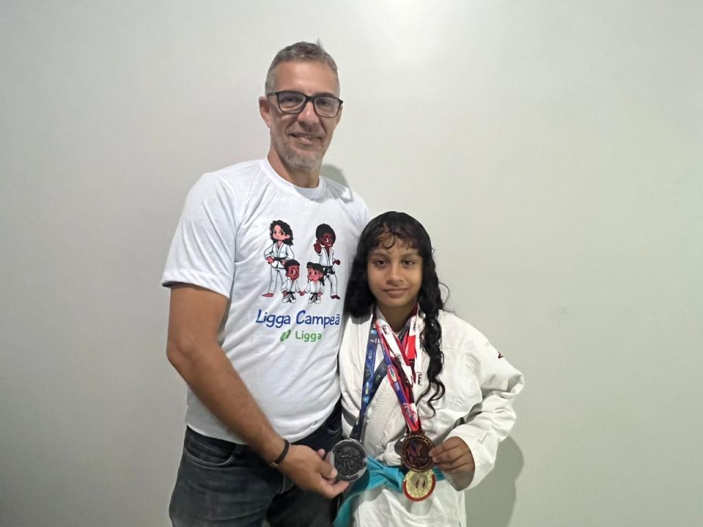 Com apenas 12 anos, a judoca Rkayara Rocha Ferreira já carrega orgulhosa, diversas medalhas conquistadas em menos de um ano; desde que começou a praticar judô, sob a orientação do Sensei Witaçuci Bezerra, no projeto social Ligga Campeã, uma iniciativa da empresa Ligga – Projeto Porto São Luís.