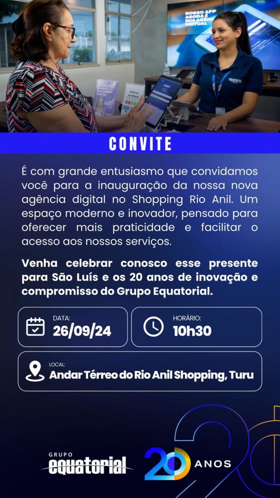 A Equatorial Maranhão inaugura nessa quinta-feira (26.09), às 10H30, mais uma agência de atendimento ao público, desta vez, no Rio Anil Shopping, localizado na Avenida São Luís Rei de França, no bairro Turu.