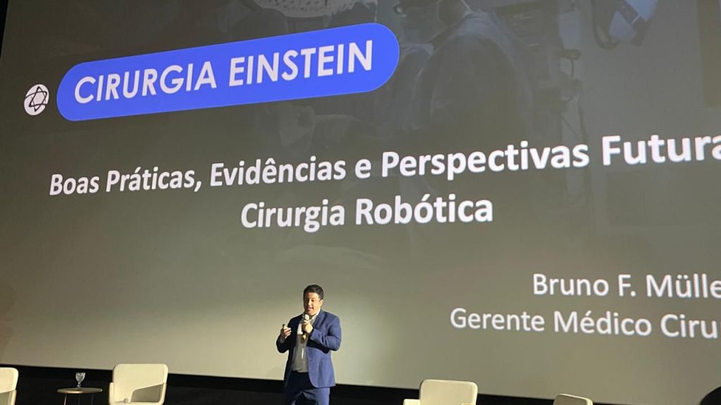 O Gerente Médico da Rede Cirúrgica do Einstein, Dr. Bruno Muller falou sobre Boas Práticas, Evidências e Perspectivas Futuras em Cirurgia Robótica. Numa visão futurística da Medicina, Dr. Bruno destacou as tendências de Cirurgias Guiadas; Visão Computacional; Nanorobótica e Robôs Autônomos.