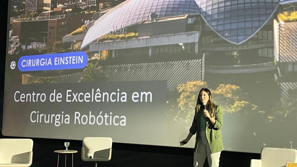 Os especialistas do Hospital Albert Einstein trouxeram uma visão de inovação, pioneirismo e prática em cirurgia robótica e uso da IA na Medicina, compartilhando muitos cases de sucesso, com os seguintes temas: Inovação e Novas Tecnologias, apresentado pela Analista Sênior de TI Clarice Dallaqua de Paula. Ela mostrou como é o ecosistema de inovação em saúde e o uso de tecnologias de ponta no Hospital Albert Einstein. Em seguida, a Coordenadora de Enfermagem Luciana Machado Lenza mostrou o histórico de sucesso do Einstein na Introdução à Cirurgia Robótica, do qual foi precursor no Brasil, no ano de 2008, com a realização da primeira cirurgia robótica no país, com a extirpação da próstata de um paciente de 70 anos. Atualmente, o Hospital Albert Einstein é o único centro de excelência e referência máxima em cirurgia robótica na América Latina; possuindo três robôs, sendo um deles o Da Vinci Xi, o mais moderno.