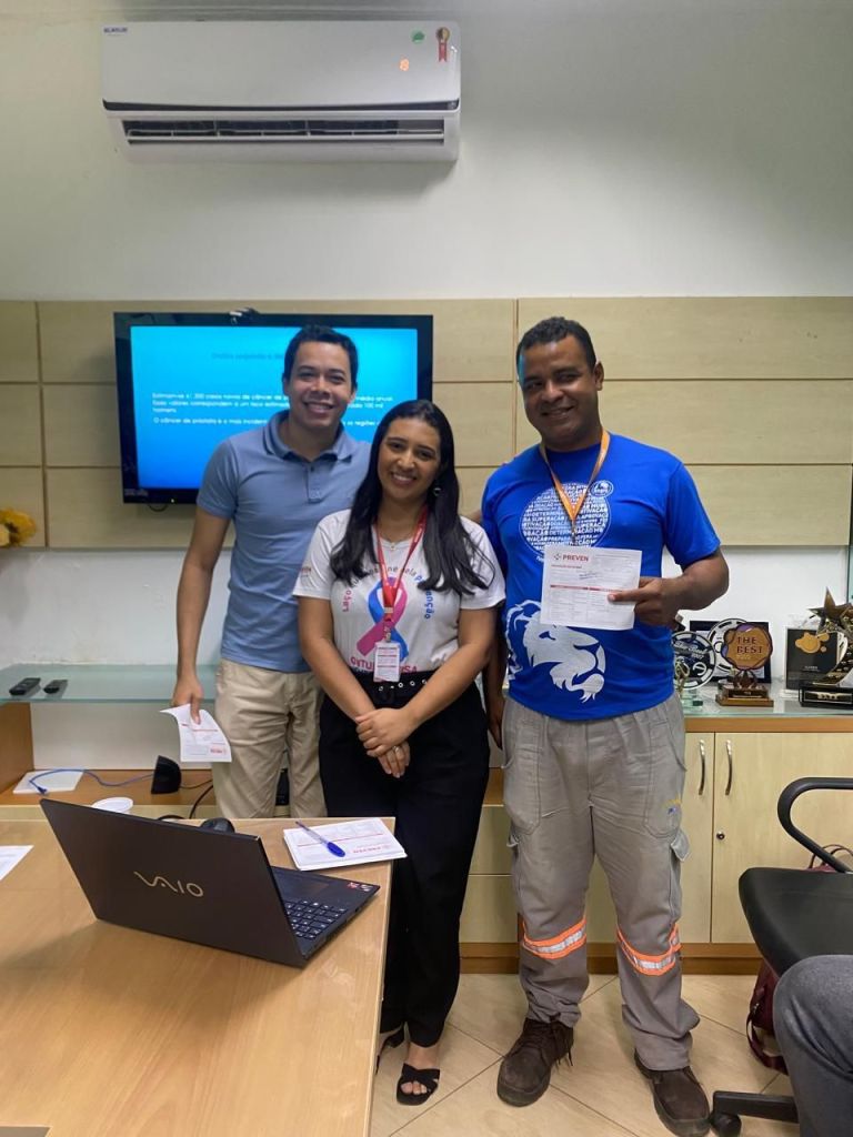 Um dos momentos mais aguardados foi o sorteio de dois exames de sangue, uma ferramenta importante para a triagem inicial do câncer de próstata. Os ganhadores, os colaboadores Joamir e Leandro, celebraram a oportunidade de realizar os exames, agradecendo à empresa pela iniciativa de promover a saúde e o bem-estar de seus colaboradores.