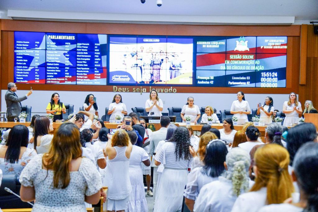Em alusão ao Dia do Círculo de Oração, celebrado no dia 6 de março, a Assembleia Legislativa do Maranhão realizou, nesta quinta-feira (13), uma Sessão Solene proposta pela deputada Mical Damasceno (PSD), autora da Lei 11.043/2019, que reconhece o Círculo de Oração como patrimônio cultural imaterial do Estado do Maranhão. O ato, conduzido pela parlamentar, reuniu evangélicos de diversas denominações religiosas, no Plenário Nagib Haickel.