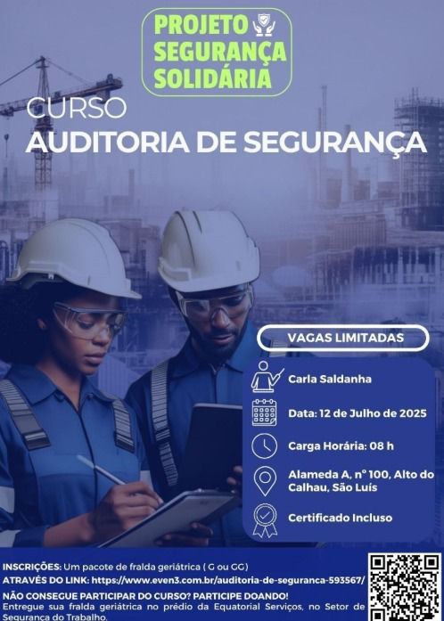 O Grupo Equatorial realizará no próximo dia 12 de julho, em São Luís, o Curso de Auditoria de Segurança, uma ação do Projeto Segurança Solidária que une capacitação técnica e responsabilidade social. A atividade será realizada no auditório da sede da Equatorial Maranhão, com início às 8h, e tem como principal objetivo arrecadar fraldas geriátricas para doação a pessoas em situação de vulnerabilidade.