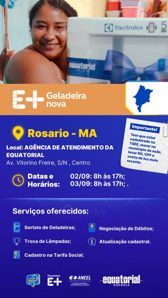 📍 *Local:* Agência de Atendimento da Equatorial – Av. Vitorino Freire, Centro, Rosário