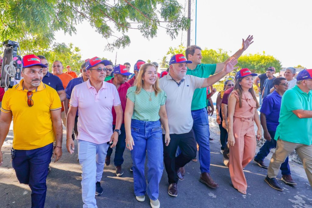 Iracema Vale, Orleans Brandão, Wallas Rocha, Herlon Júnior, outras autoridades e a população comemoram as novas obras e melhorias em São Benedito do Rio Preto