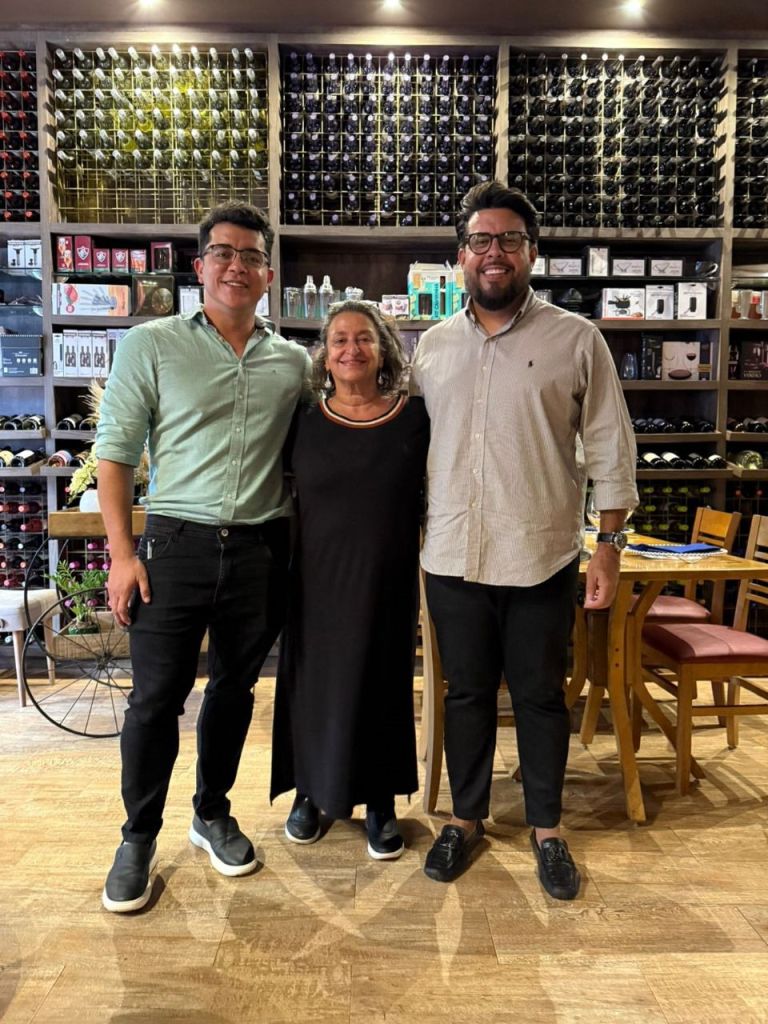 A atriz que veio a São Luís para encenar a comédia “Nasci pra ser Dercy” no Teatro Arthur Azevedo, experimentou as delícias do menu contemporâneo, drinks e vinhos especiais da Villa do Vinho Bistrô. Ela foirecebida pelos anfitriões Beto Soares e Werter Bandêira.