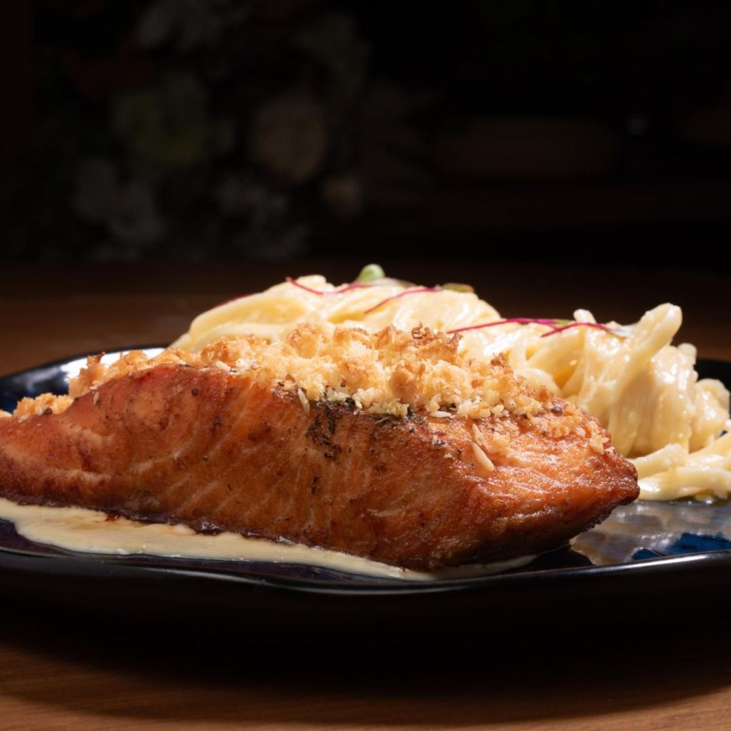 Para o prato principal, a casa oferece quatro alternativas igualmente apetitosas: Tagliatelle ao Pomodoro, Risoto de Salmão com redução de laranja, Carne de Sol com batatas e cebola crocante e o saboroso Arroz de Costela.