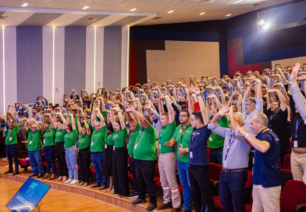 Os colaboradores foram recebidos com uma apresentação artística da Companhia Encantar, que trouxe leveza e entusiasmo para começar o dia, com uma performance que enalteceu a cultura maranhense e transmitiu uma mensagem sobre cuidado e segurança entre os colaboradores. Em seguida, a equipe de Brigada de Emergência, representada pelo técnico de segurança Matheus Felipe Alves, compartilhou orientações importantes sobre segurança no ambiente do evento.