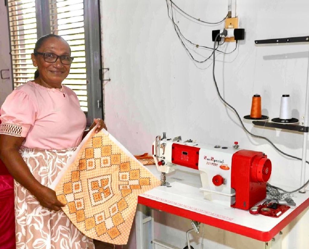 Outra artesã e crocheteira é a dona Maria Antônia Ferreira Reis Conceição, moradora da Mãe Chica. Ela fez quatro cursos diferentes – empreendedorismo básico; doces e salgados, corte e costura e curso de bolos caseiros – todos ofertados pela empresa. Com cada curso foi aprendendo um pouco mais, e despertando a confiança na qualidade de seu trabalho, e na viabilidade da sua grife M A Artes e Crochê.