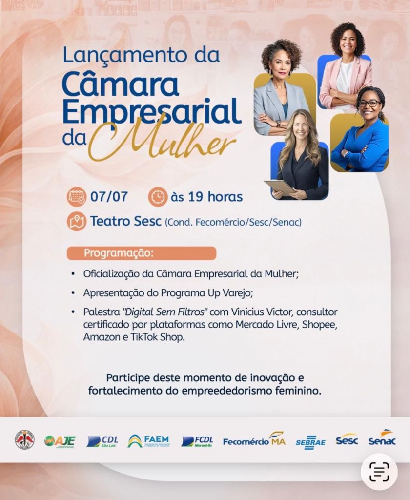 A Federação do Comércio de Bens, Serviços e Turismo do Estado do Maranhão (Fecomércio-MA) realiza, na terça-feira (7), às 19h, o lançamento da Câmara Empresarial da Mulher.